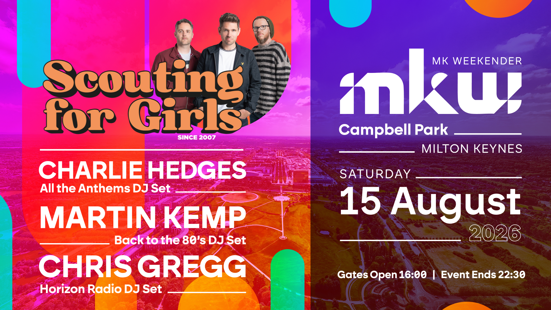 Get ready for an unforgettable night of live DJs on a stunning outdoor stage in Campbell Park, right in Central Milton Keynes headlined by the legendary Scouting For Girls.
